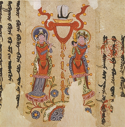 佛教曾是新疆最流行的宗教,絲綢之路上僧侶往來、佛經(jīng)移譯、佛法流布,對內(nèi)地影響深遠(yuǎn)。此次展覽中的《妙法蓮華經(jīng)》寫本、龜茲貴族供養(yǎng)人像和展板上的蘇巴什佛寺、克孜爾石窟205窟龜茲王托提卡和王后壁畫等,使我不禁想起了在佛教傳播史上具有劃時代意義的千古一僧——鳩摩羅什。