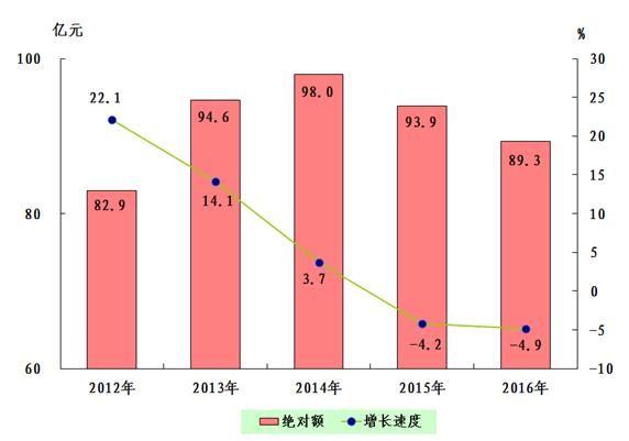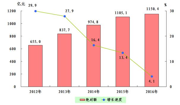 圖1:2012—2016年全市生產(chǎn)總值及增長(zhǎng)速度