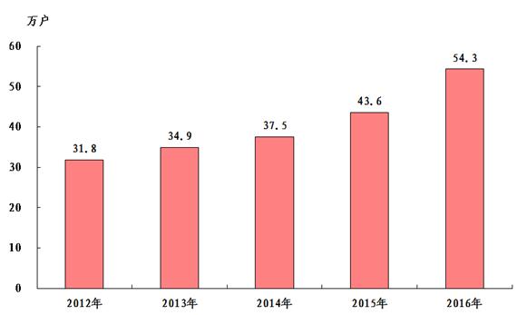 圖8:2012-2016年全市寬帶接入用戶