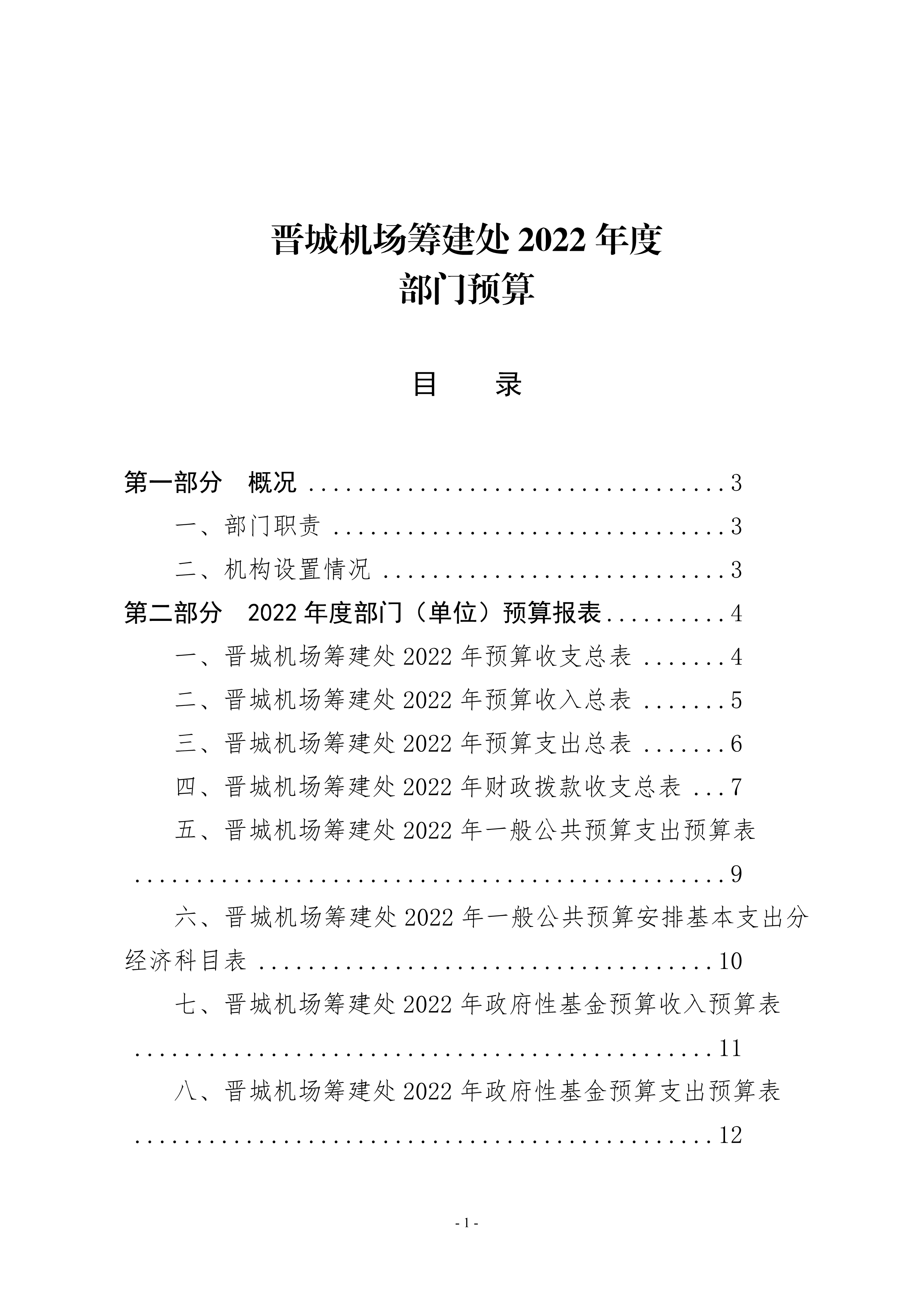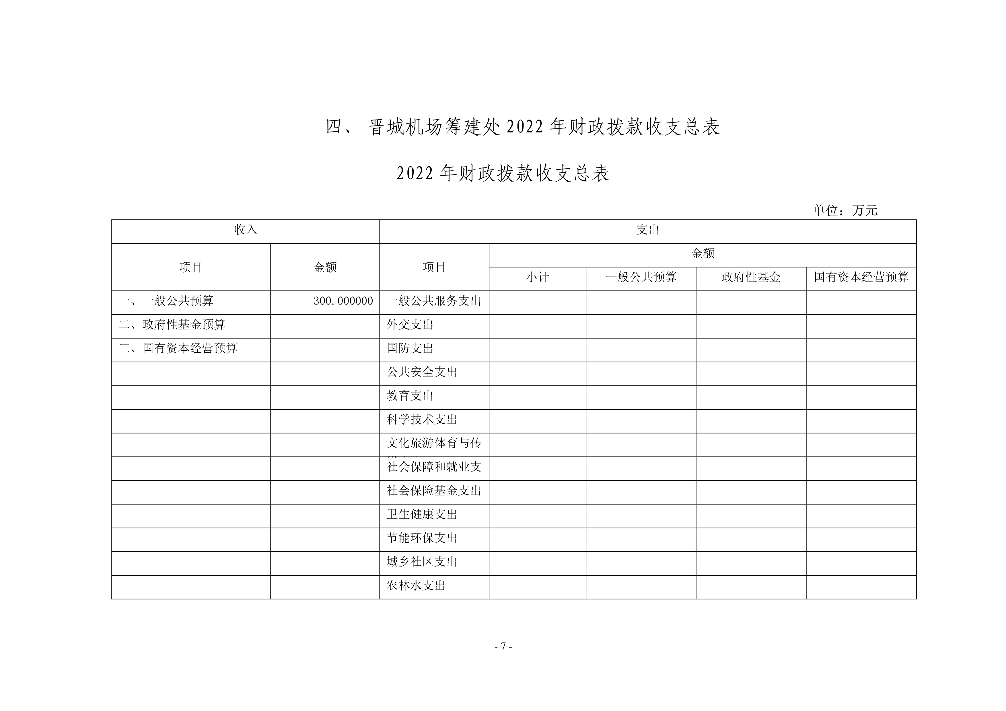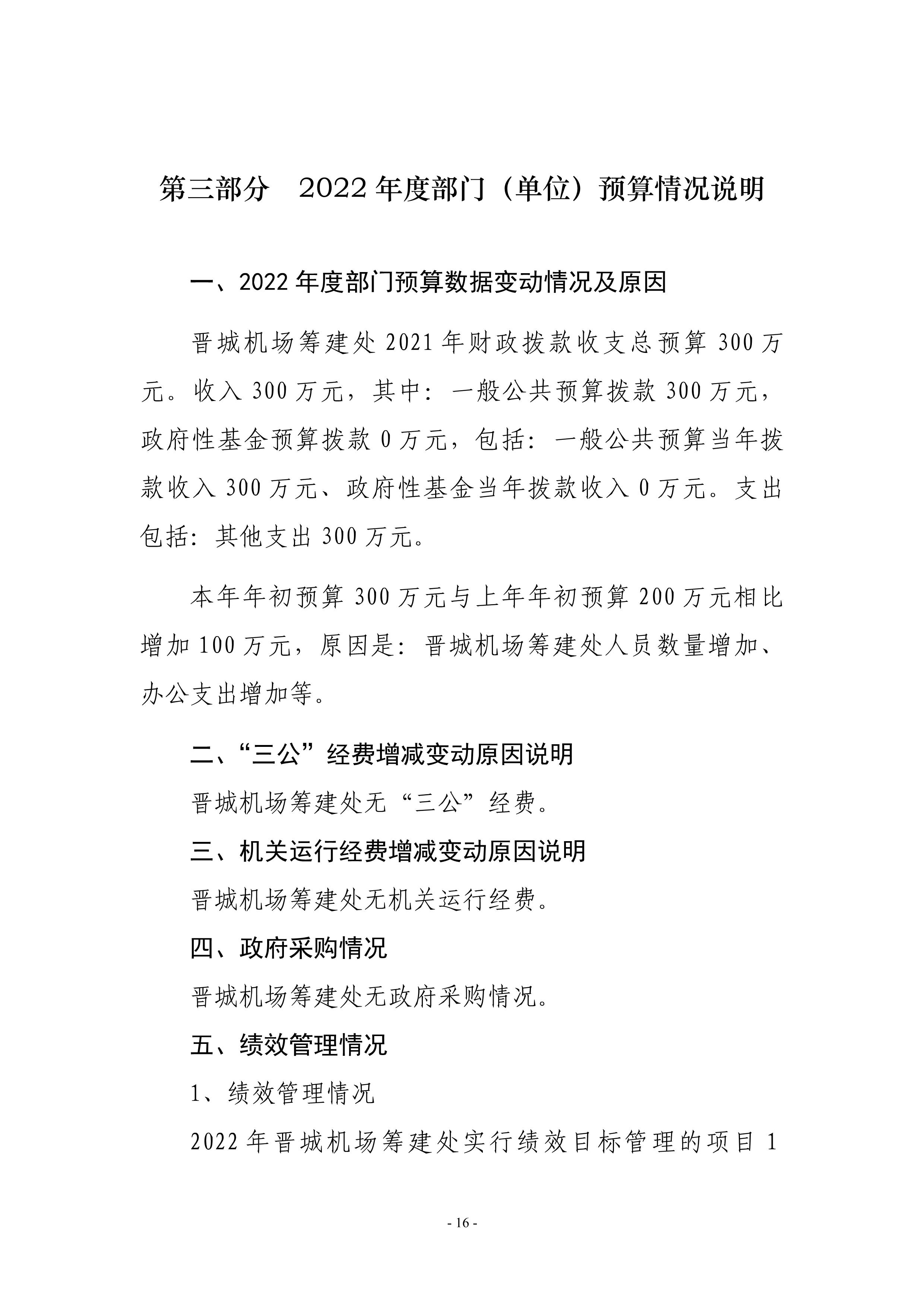 晉城機(jī)場籌建處2022年度預(yù)算公開