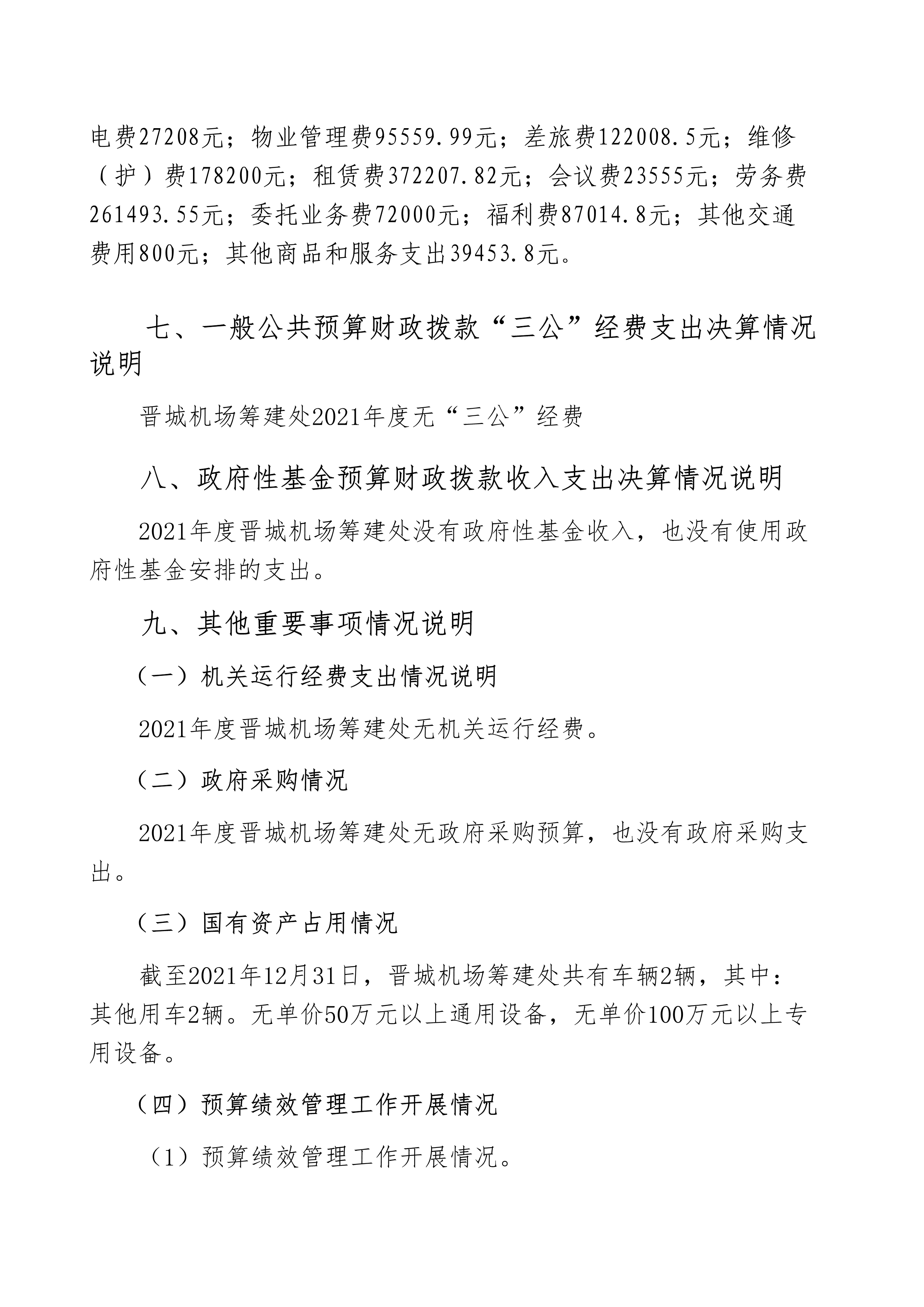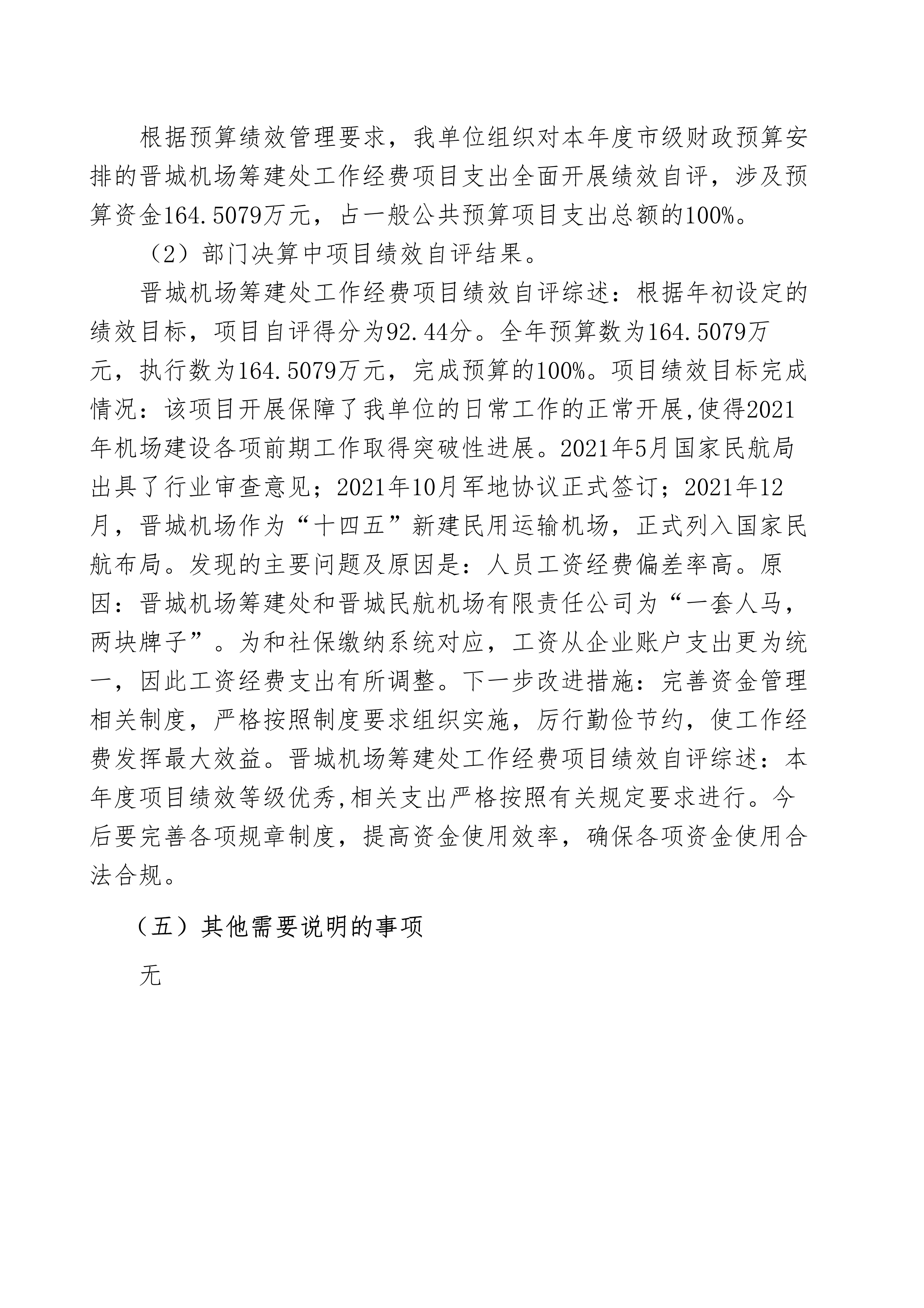 晉城機(jī)場(chǎng)籌建處2021年度決算公開