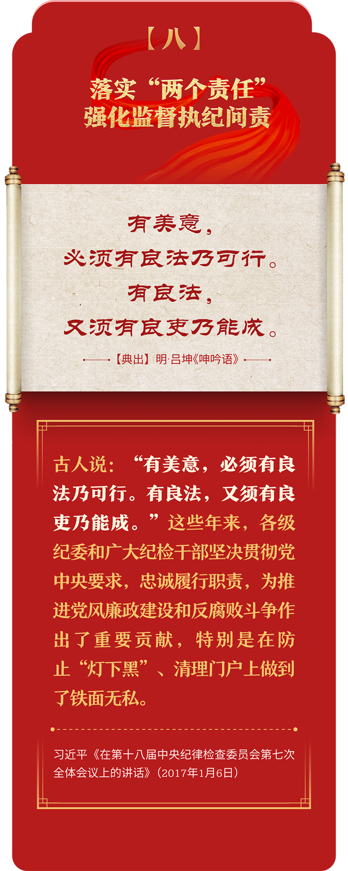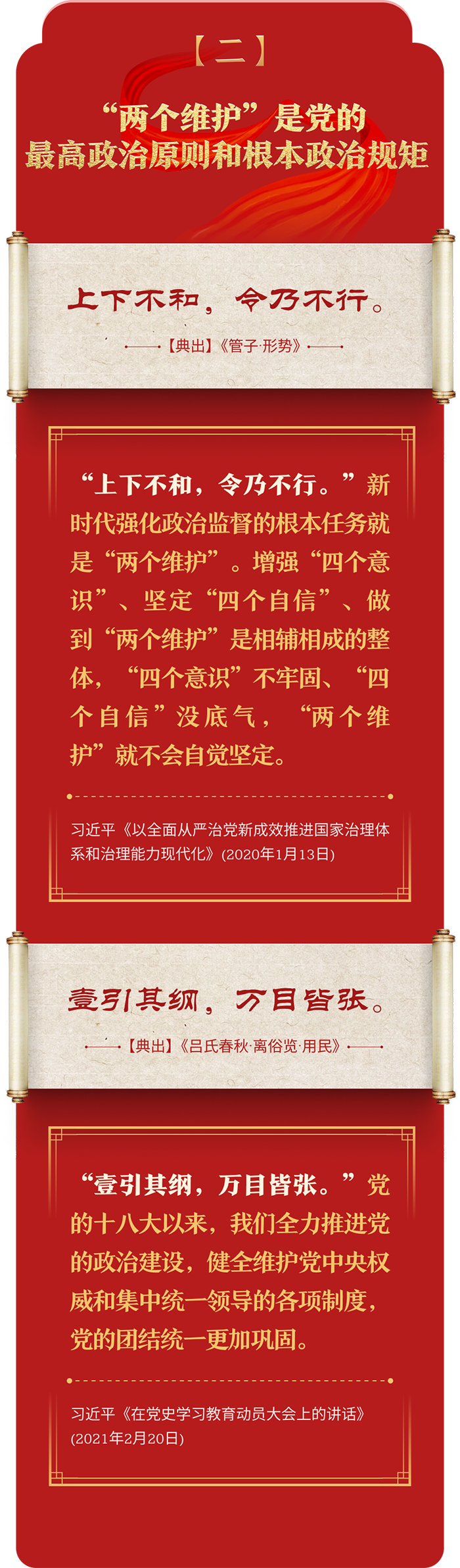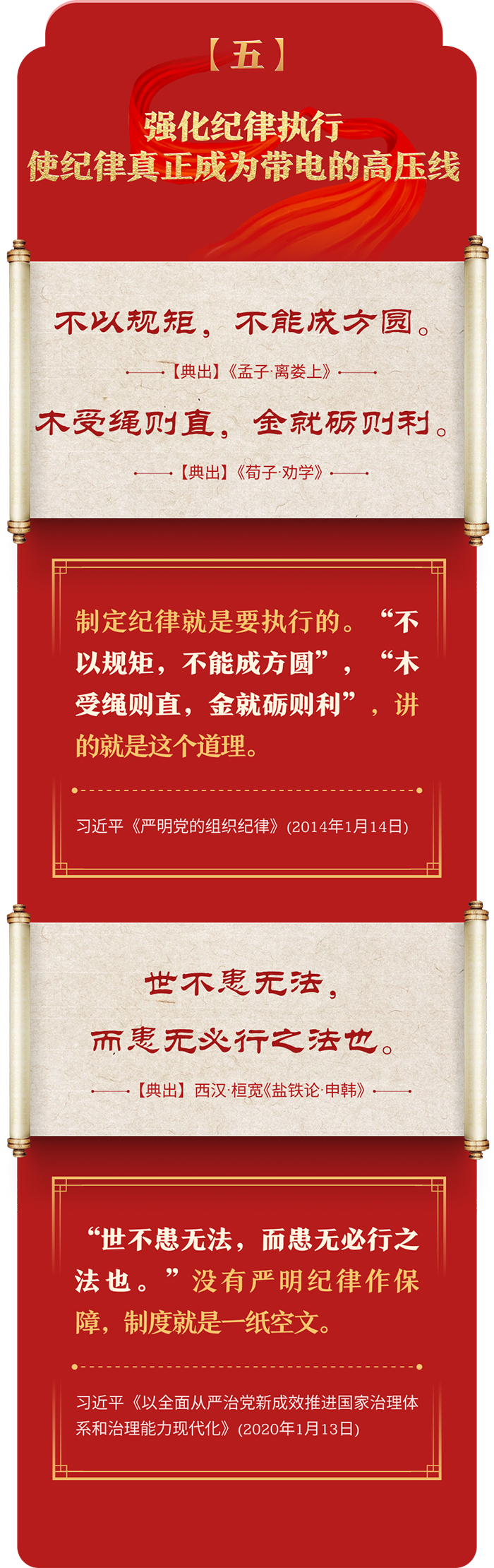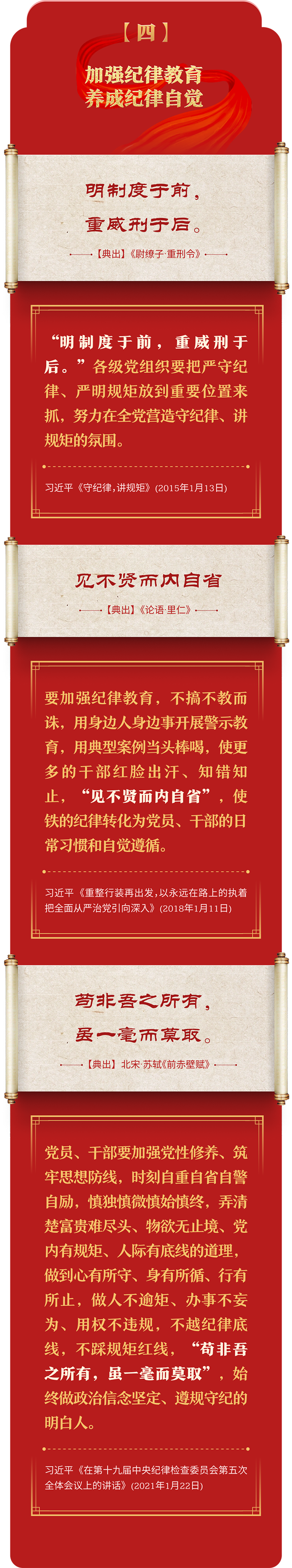 編者按:加強紀律建設是全面從嚴治黨的治本之策。黨的十八大以來,習近平總書記圍繞全面加強黨的紀律建設發(fā)表一系列重要論述,立意高遠,內涵豐富,思想深刻,引導黨員干部學紀、知紀、明紀、守紀,真正把紀律規(guī)矩轉化為政治自覺、思想自覺、行動自覺,確保全黨目標一致、團結一致、步調一致。在這些重要論述中,總書記精妙運用古代典籍經典名句,以古喻今、啟迪思想、激蕩精神,讓我們一起來學習!
