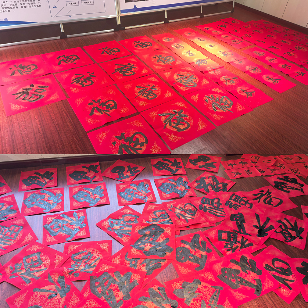 活動現(xiàn)場,墨香四溢,熱鬧非凡。市書法協(xié)會的書法家們激情滿懷,揮毫潑墨,筆鋒或剛勁有力,或飄逸灑脫,轉眼間,一個個飽滿的“!弊帧⒁环⒁饧榈拇郝(lián)便躍然紙上。職工們圍在一旁,目不轉睛地欣賞著書法創(chuàng)作過程,不時發(fā)出陣陣贊嘆。一些職工忍不住親自上手,寫出的字跡或蒼勁有力,或娟秀工整,絲毫不輸專業(yè)水準,引得周圍人紛紛豎起大拇指。大家還興致勃勃地挑選自己心儀的對聯(lián),歡聲笑語回蕩在現(xiàn)場,氣氛其樂融融。