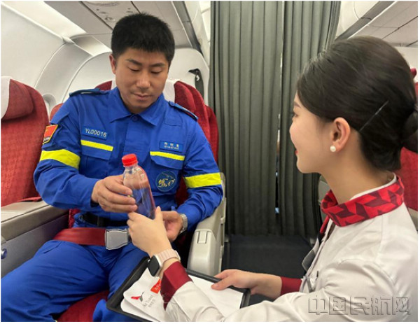 “在危難時刻你們無畏逆行,用專業(yè)與擔(dān)當(dāng)守護生命,用汗水與信念點亮希望”當(dāng)航班進入平飛階段,乘務(wù)組通過機上廣播向藍天救援隊員們表達崇高敬意,廣播未畢,客艙內(nèi)就已響起熱烈掌聲,旅客們紛紛為這群“逆行英雄”點贊鼓掌。