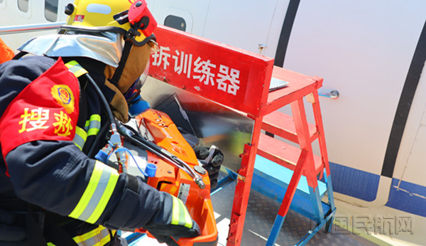 消防員在比賽中進(jìn)行模擬航空器破拆操作(本文圖片均由葉長青/攝)